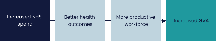 While we have not proven a directly causal relationship, we hypothesise that increased health and care spending can drive GVA growth in two ways: